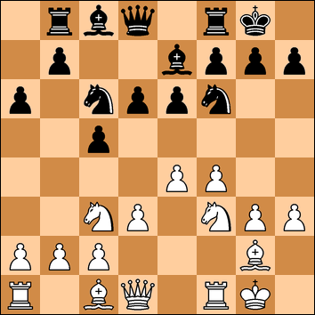 Black should have played 12. ... Ra8 or 12. .. Qb6 where White has an advantage and I would try moves like Rb1, Bf4, perhaps some sort of kingside play. But Black has missed something.