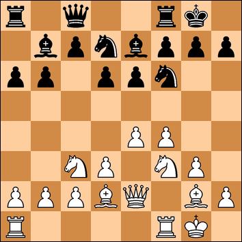 However, Black is not forced to take the bishop on g2 (an advantage of the queen being on c8 which I criticised earlier). And can answer 12. Nd4 with 12. . c5 or just 12. .. dxe5 13. fxe5 where it looks silly.