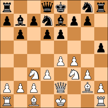 The computer now recommends 13. .. Ng6 to get some play and try to castle, or 13. .. a6 to prevent a future Nb5.